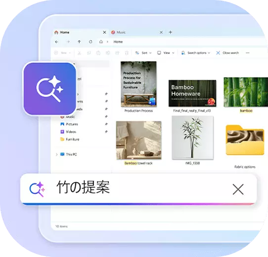 ファイル名やキーワードを覚える必要はありません。必要なものを説明するだけで、PC が自動的に探してくれます。*5