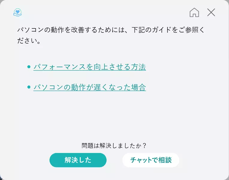 お使いのPCについて負荷が高くなっている際はLAVIEサポートから「負荷が高くなっています」というメッセージが表示されます。