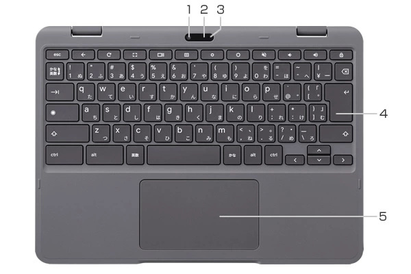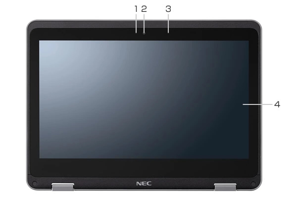 ビデオ通話やビデオ会議に使用できます。Webカメラ使用時は、Webカメラ横のランプが点灯します。Webカメラはインカメラとアウトカメラがあり、2つのカメラを切り替えることができます。 -