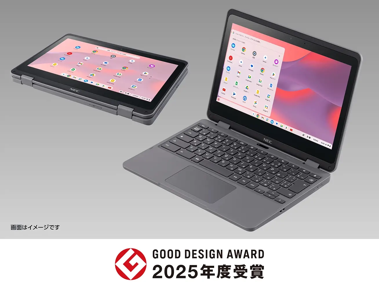 この度、NECパーソナルコンピュータのノートパソコン 3 製品、 VersaPro UltraLite タイプVY、VersaPro タイプVM、NEC Chromebook Y4 が、2025年度のグッドデザイン賞を受賞いたしました。