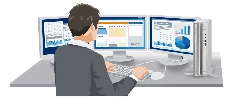 DisplayPort×2搭載で、複数画面での作業効率を向上させ、業務をより快適にサポートします。