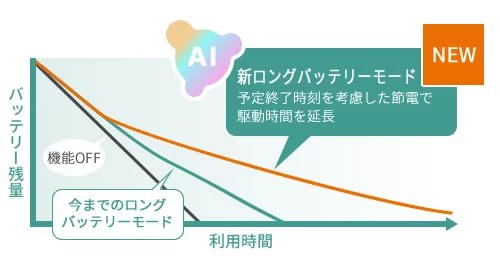 スケジュールAI/行動予測AIとの連携により、従来機能に加え、各ユーザの予定や行動に応じたバッテリー運用を可能にする機能を提供します。