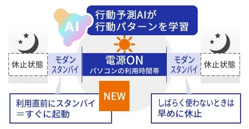 - Teams会議など、特定の処理実行中に 電力を抑える設定に自動で切替え。
