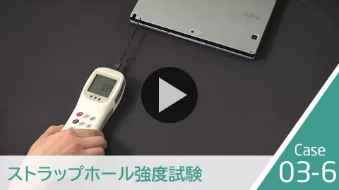 パソコンを両手で引っ張る場合など瞬間的に強力な力を加えられても、盗難防止ロックとして問題なく機能することを想定し、5方向の引っ張り試験を行います。