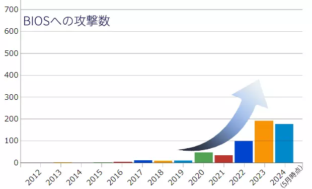 2012年からの10年間でファームウェアやBIOSに対する攻撃が6倍以上に増加。