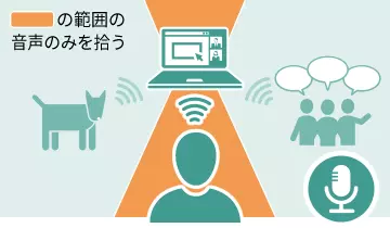 マイクの横方向から入るノイズ/音声を抑制し、前後からの音声のみをクリアに集音する機能です。ノイズサプレッサーやタイピング音抑制と同時動作することで、集音する音声品質を向上できます。
