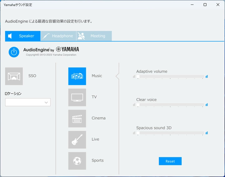 ミーティング機能など用途に応じて音響効果を設定/変更できる「Yamahaサウンド」をPC設定ツールに搭載。