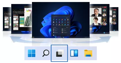 Windows 11には、ハイブリッドなワークスタイルと昨今の企業ニーズをサポートする機能を搭載しています。アプリやドキュメントの見つけやすさ、作業に応じたウィンドウの整理やデスクトップ切り替え、オンライン会議の立ち上げや画面共有のしやすさ…。従業員やチームが業務に集中し、効率的にコミュニケーションやコラボレーションが行えるよう機能の拡充や強化が図られています。