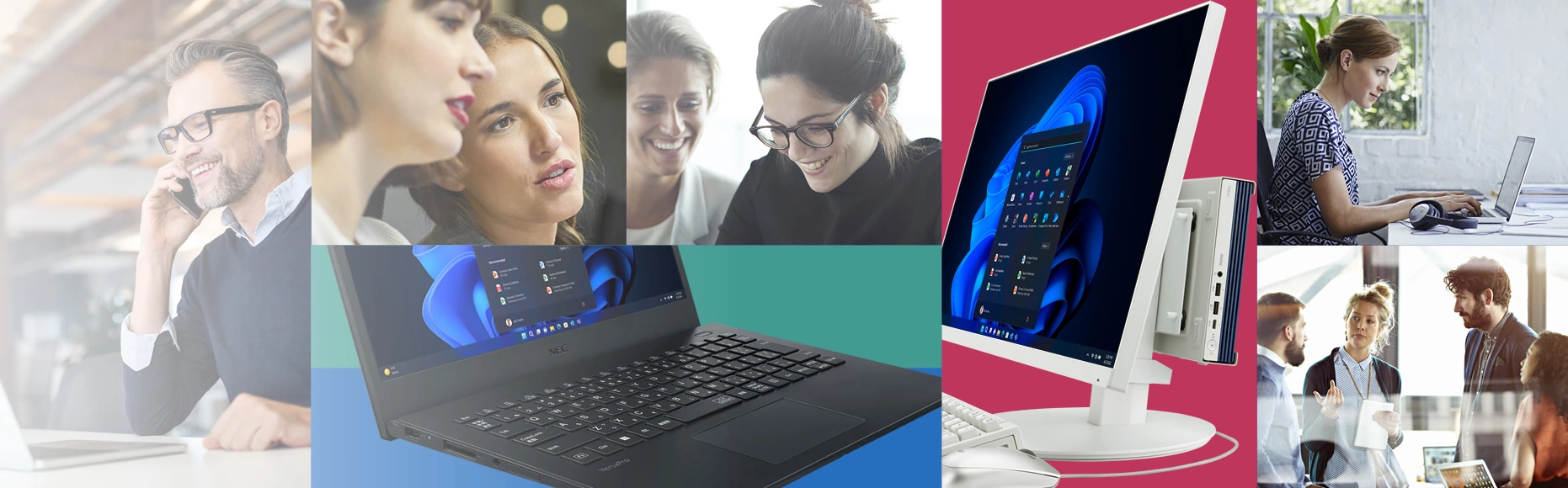 NEC ビジネスPCでは、購入後すぐにWindows 11 Proをお使いいただけるようにモバイルノートPC、据え置き向けのビジネスノートPC、タブレットPC、デスクトップPC、それぞれにWindows 11 Proプリインストールモデルをご用意しています。