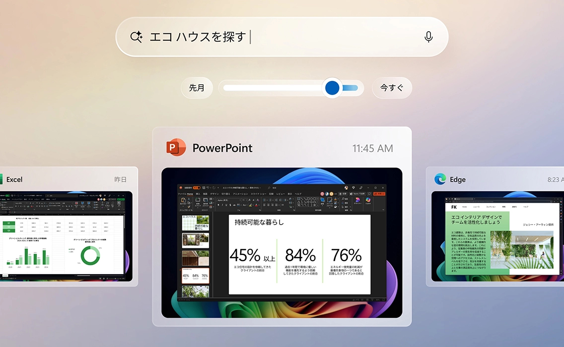 自分の言葉で説明するだけで、画面に表示されたほとんどの情報をリコール機能が見つけ出します。