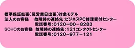 専用ラベルが貼られており、「 引取保証拡張SK基本サービス3年間 」もしくは「引取保証拡張SK基本サービス4年間」の場合、「引取保証拡張SK 延長キット」にて保守期間を 5年間に延長することが可能です。