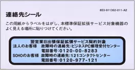 ご利用中のPCが「引取保証拡張SK 基本サービス」のサービスお申し込み済みの場合、下記専用ラベルの有無をご確認ください。