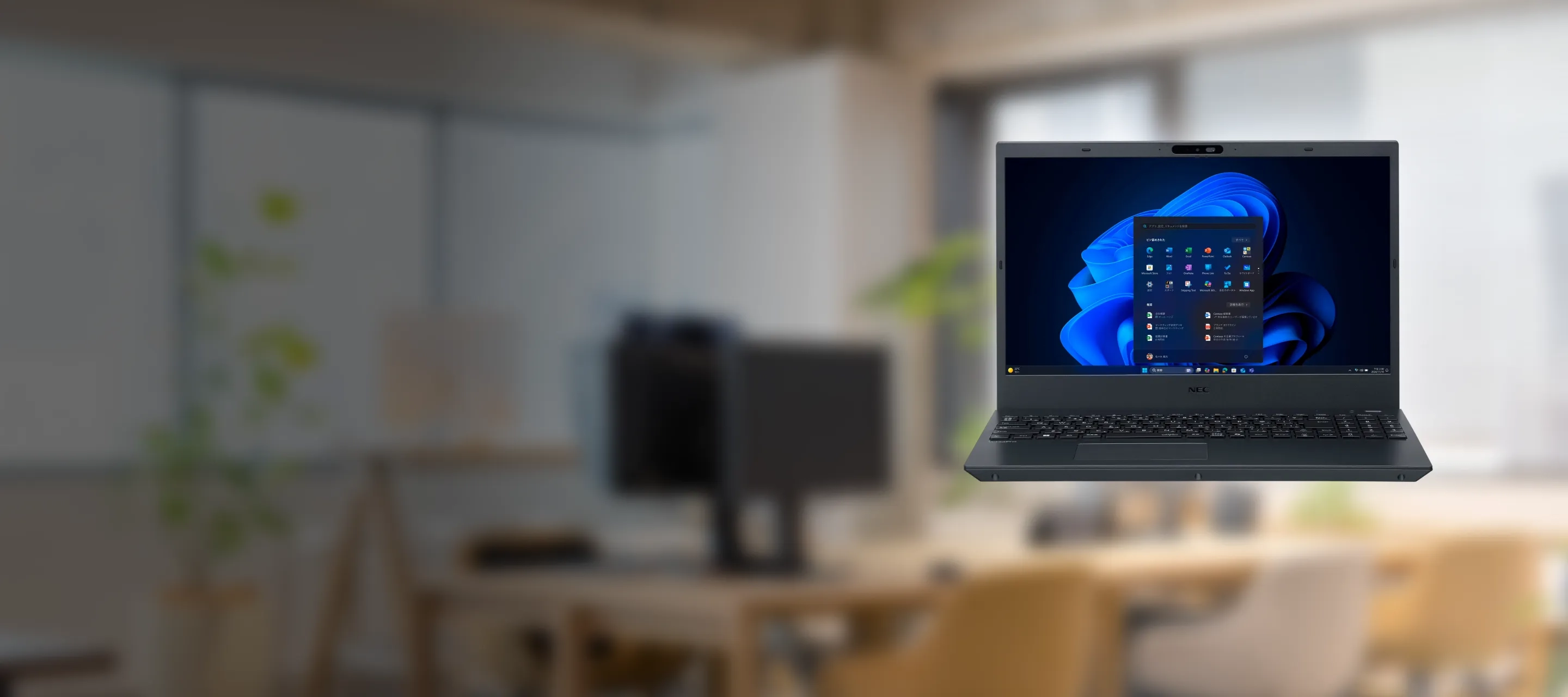 Web会議などのビジネスのコミュニケーションに役立つ便利な機能を利用できるWebカメラを搭載。さらに、Webカメラで利用者の離席を感知し、ディスプレイの消灯やスリープモードへ移行するといった離席判定機能も利用可能*。