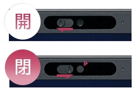 プライバシーシャッターWebカメラのレンズを開閉できるプライバシーシャッターを装備。スライド式の切り替えにより、Web会議などでの意図しないカメラの映り込みを回避します。