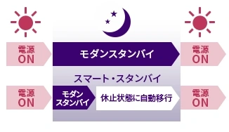 スマートスタンバイ- PCを使わない夜間に、自動的に休止状態に移行し、消費電力を抑制。