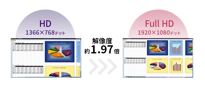 1,366×768ドットHD液晶の約1.97倍の高い解像度で、より多くの情報を表示して作業ができます。