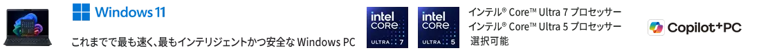 インテル® Core™ Ultra 7 プロセッサー 258V、インテル® Core™ Ultra 7 プロセッサー 256V、インテル® Core™ Ultra 5 プロセッサー 228V、インテル® Core™ Ultra 5 プロセッサー 226V搭載モデルは、官公庁・自治体・教育機関・SOHO・個人事業者様向けです。