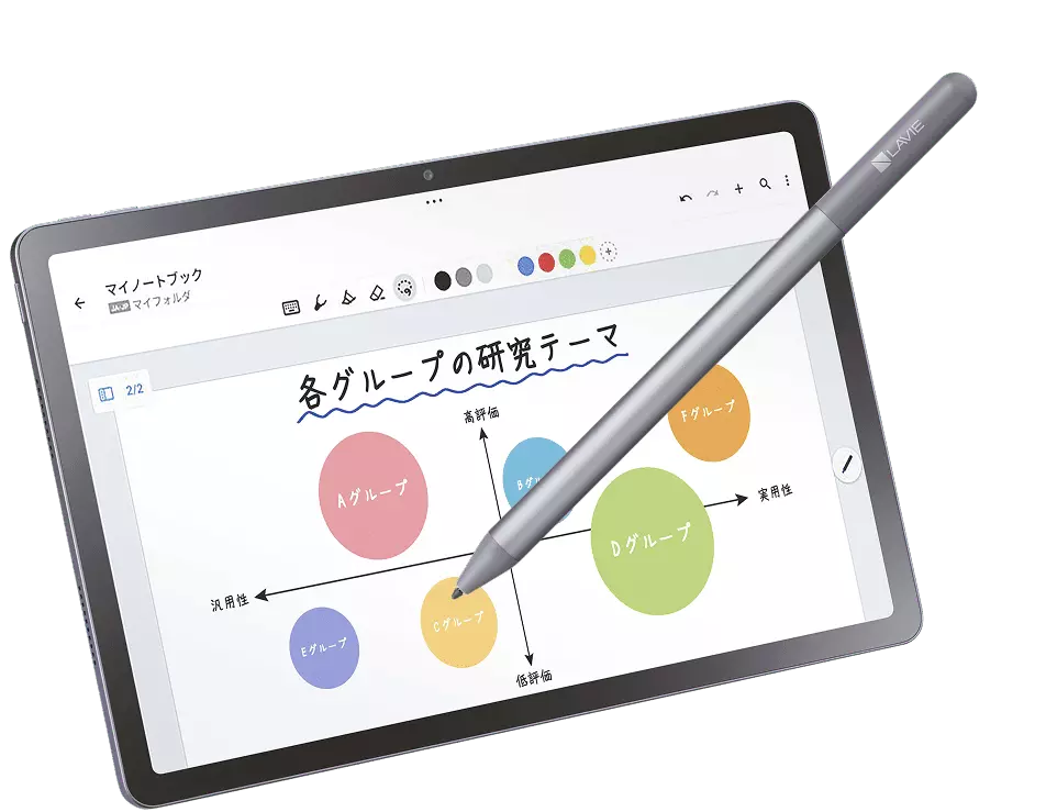 LAVIEタブレットは、デジタルペンやキーボードが使えるのでとっても便利。